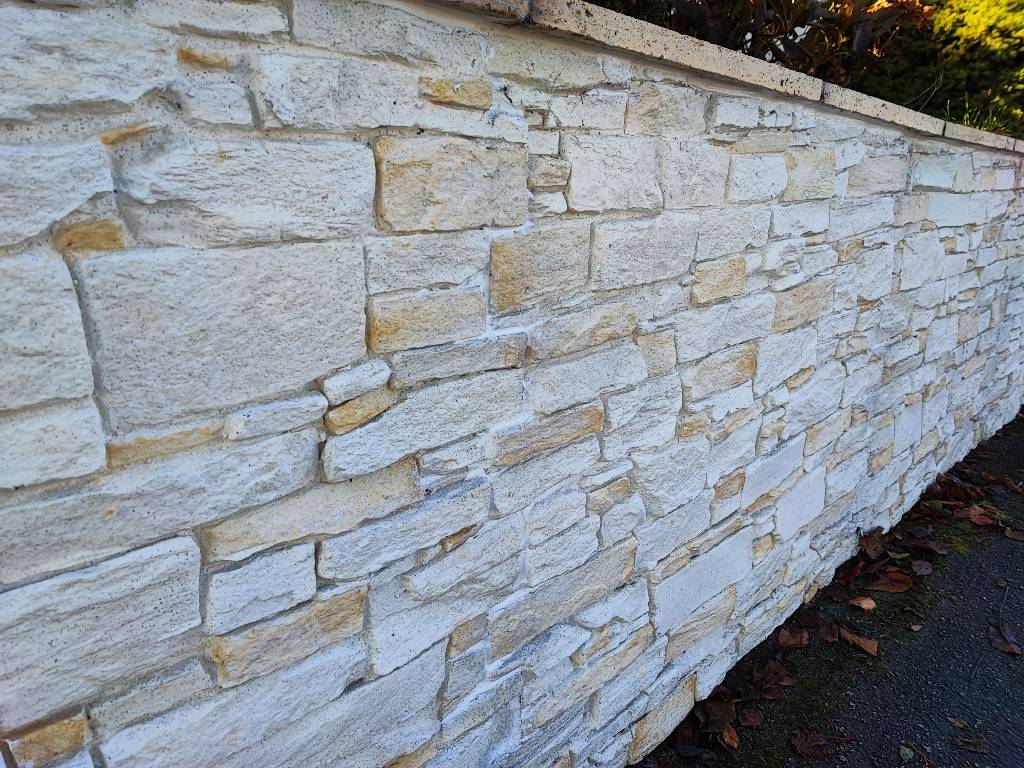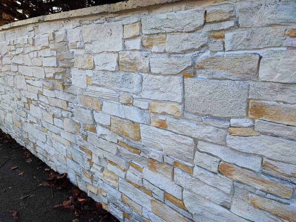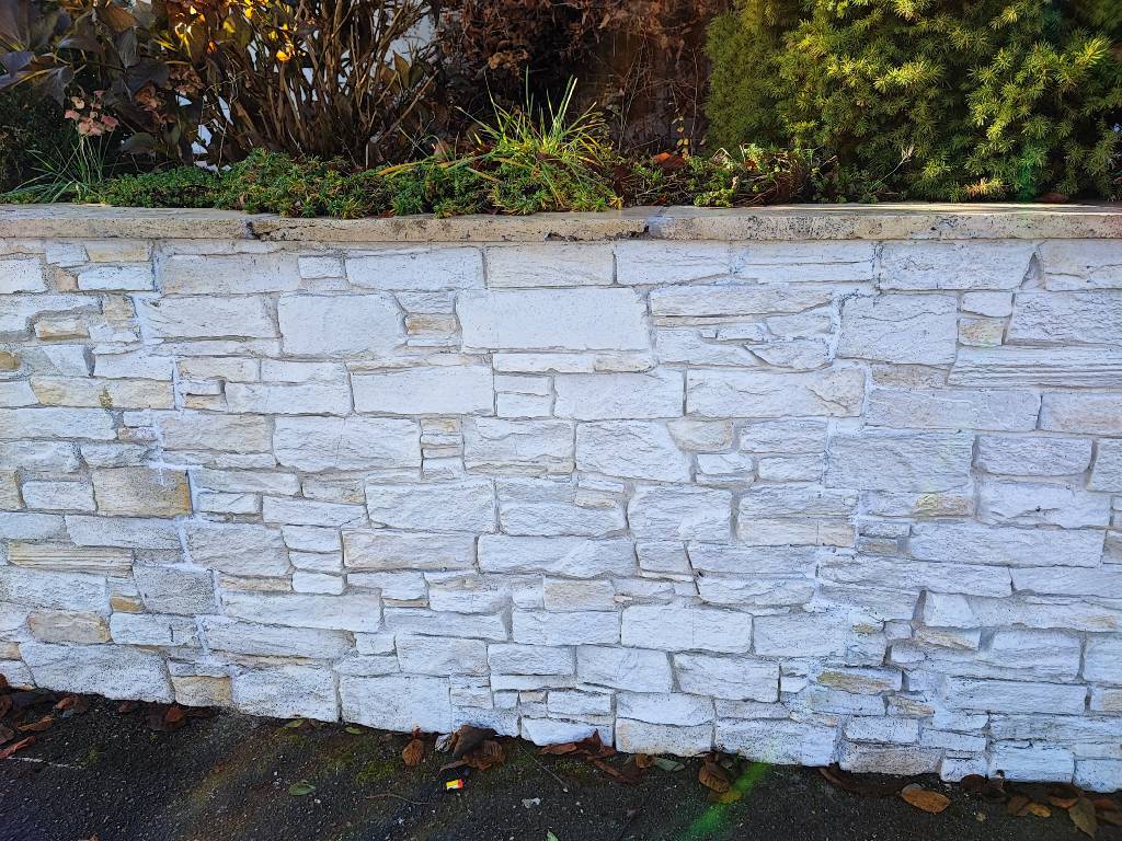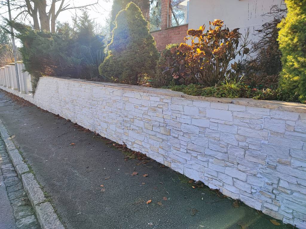 Bei diesem Projekt wurde eine klassische Gartenmauer vollständig mit den Amalfi Kunststeinpaneelen verkleidet. Die gewählte Farbvariante in Creme, kombiniert mit hellen und dezent ockerbraunen Steinen, fügt sich besonders harmonisch in die natürliche Umgebung ein. Die warmen Farbtöne reflektieren das Sonnenlicht auf angenehme Weise und verleihen dem Garten eine freundliche und einladende Atmosphäre.